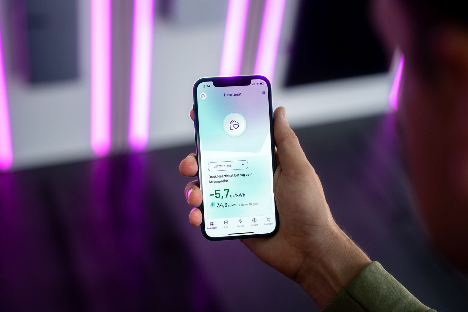 Wir sind Clean-Tech Unternehmen, wenn es um die Software und Hardware geht, die wir anbieten, und zugleich sind wir Bewegung, wenn es die Art und Weise angeht, wie jeder Kunde und jede Kundin Teil einer großen Energiequelle und eines kollektiven Schwarmspeichers werden. Wir bieten eine innovative technologische Plattform-Lösung, mit der jede*r etwas individuell für das Klimaziel tun kann. Mit uns wird saubere Energie zu einer neuen Experience. Deinen gesamten Energiebedarf zuhause, aber auch für unterwegs, kannst du jetzt einfach selbst managen und wirst unabhängig von den Konzernen und Staaten, die aktuell die fossilen Energien bestimmen. Unsere App zeigt dir immer deinen aktuellen Strompreis, mit dem du bis zu über 80 % sparst im Vergleich zu regulären Stromtarifen. Das ist ein tolles Gefühl! Du schaffst damit zum einen eine neue CO₂-neutrale Energiezukunft und sparst auch noch ordentlich Stromkosten. Kommunikativ war uns von Beginn an für unsere Brand wichtig, das Thema Energie anders zu spielen als die Mitstreiter*innen wie E.ON, Vattenfall, Enpal oder andere. In unserem jüngsten TV-Spot scheint beispielsweise zu Beginn nicht die Sonne auf ein PV-bedecktes Dach, sondern es gewittert und stürmt. Wir kommunizieren unerwarteter, mutiger und stören das Auge vielleicht auch durch Ungewohntes, Auffälliges. Wichtig ist uns dabei immer die Kombination mit Ästhetik, Modernität aber auch Authentizität.